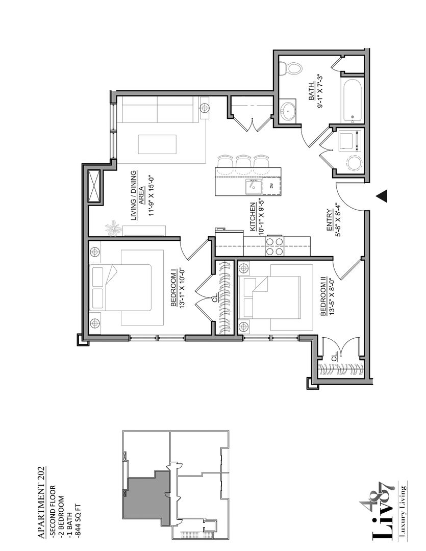 Luxury 2 Bedroom 1 Bathroom Apartment